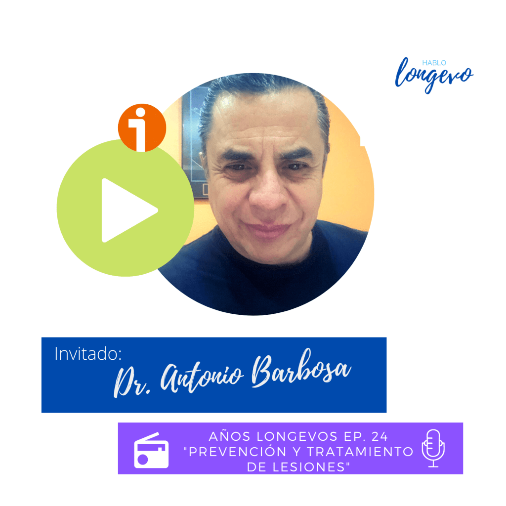 ¿Sabes prevenir o tratar lesiones de la persona longeva?. Ya sea que te lo perdiste o si lo quieres volver a escuchar, disfruta del episodio 24: “Prevención y tratamiento de lesiones”, en el que tuvimos al Dr. Antonio Barbosa, Director Médico del Centro de Rehabilitacion Fisica Integral S.C.