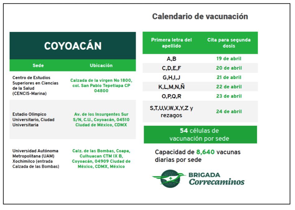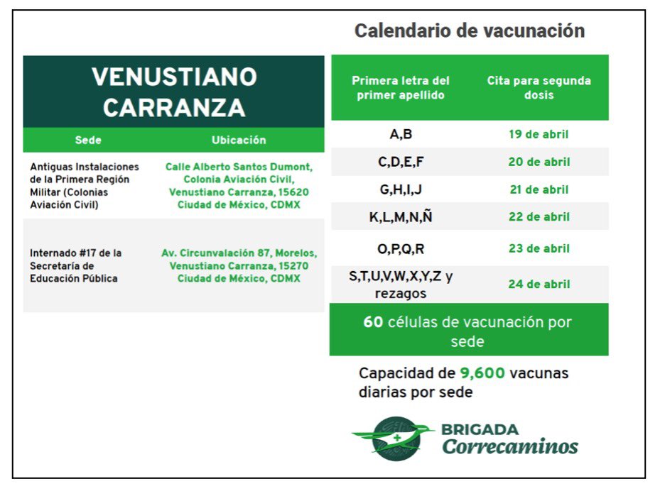 ¡Pasa la voz! ¡COYOACÁN Y VENUSTIANO CARRANZA ya les toca de nuevo! Acá les compartimos el esquema para la 2a dosis de vacunación en la Ciudad de México, para personas adultas mayores de 60 años y más.